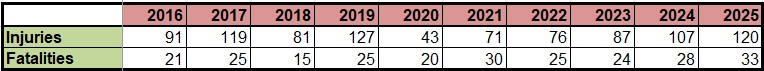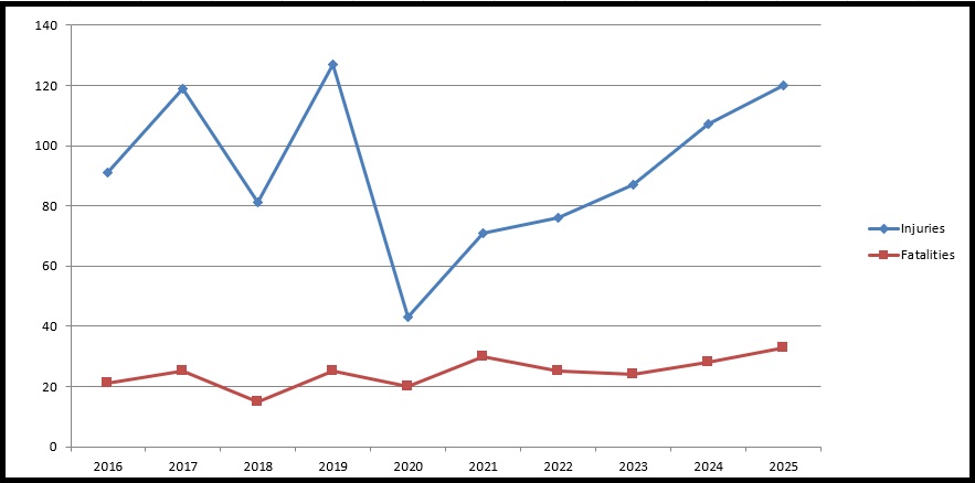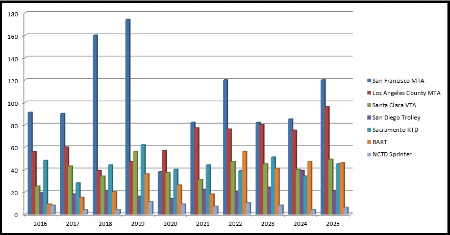 CPUC General Order 164-F requires California rail transit agencies to report incidents that meet specific thresholds, such as if the incident resulted in a fatality or certain level of injuries, property damage exceeding certain amount, etc. Depending on the circumstances of a reportable incident, the CPUC will either directly investigate or alternatively review and approve incident investigations conducted by the rail transit agencies.